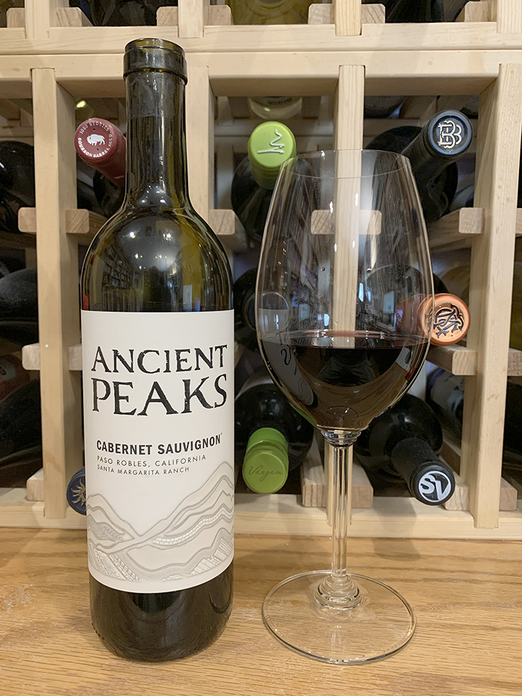 Ancient Peaks Cabernet Sauvignon, Paso Robles 2019 is rich, approachable, consistent vintage after vintage. Plenty of dark fruits. Juicy and flagrantly a Cali cab, although it judiciously avoids the excesses that some makers cannot save themselves from. If you like big, ripe-fruit, coat-your-mouth with plush pleasure, this is your Paso pour. Pair with beef, although its lack of significant tannins means it will not as well with heavily marbled cuts; rack of lamb; flank steak; filet mignon; duck breast; roast chicken. Cheese—camembert, swiss, mozzarella, gouda, gruyere. $17-25