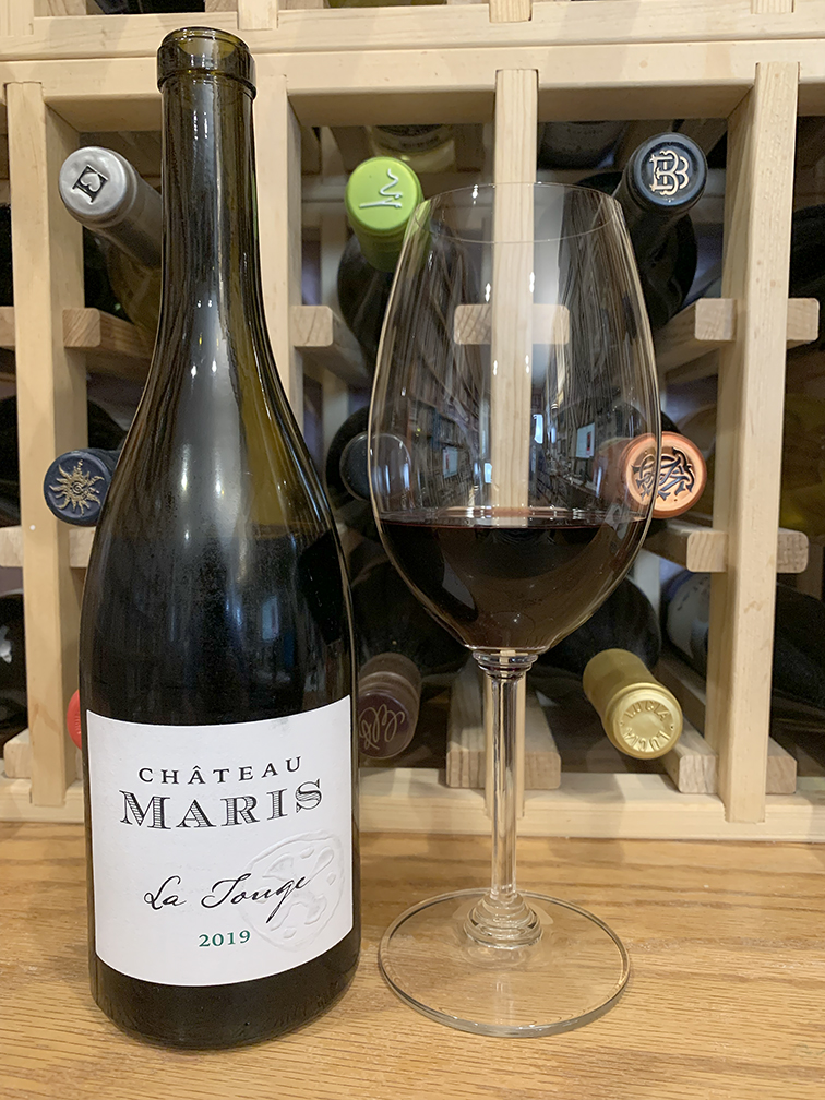 Château Maris Minervois La Livinière La Touge 2019 is tasty, fruit-forward effort with some complexity for a wine at this price point. Smooth deliciousness is principle asset. Approachable with genial tannins and acidity without being flabby or nondescript. Vegan and vegetarian certified. Pair with beef dishes—grilled steak, barbecue beef; veal; lamb; pork—roast pig, pork tenderloin; pasta dishes; wild game—venison, boar; comfort food—meatloaf, pizza, spaghetti and meatballs, burgers. Versatile. Can be enjoyed on its own with light snacks, charcuterie. Cheese—parmigiano reggiano, aged gouda, hard, aged cheddar, harvarti, swiss. $17-21