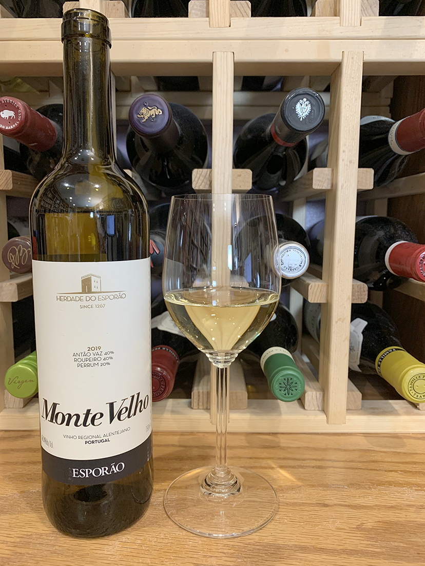 Herdade do Esporão Monte Velho White, Vinho Regional Alentejano 2019 is classic Portuguese white/branco with citrus bite and apple texture. Excellent acidity. Lacks depth or power, but you don’t buy or sip this style of Portuguese branco/white for those elements. Served cold as a picnic wine and you connect with its métier. Pair with fish and shellfish; basil pesto; pasta dishes with white sauce; vegetable salad; braised lamb shanks; pork. Excellent QPR (quality-price ratio). $6-12