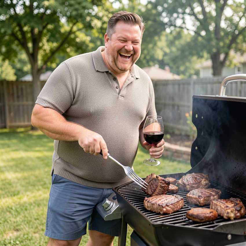 • In the 1980s and especially the 1990s, monster, jammy, very high alcohol, zinfandel fruit bombs became a big thing, especially among manly men. Let the ladies sip insipid white zin, some gals even put ice cubes in their tumbler glass (shudder). Big zin was hedonistic macho indulgence. The 16-plus percent ABV and the overly-ripe fruit meant the wine tasted sweet even if laboratory tests proved it was “dry.” The high alcohol made it more a “cocktail wine” than anything a reasonable person would pair with food. Except, maybe, with a huge slab of fat-dripping beef you just removed from your expensive backyard grill fired by mesquite wood you harvested yourself with your high-powered chainsaw. Throw in a plate of fried onion rings and a loaded baked potato, and we’ve got a real meal here, buddy. A hearty slap on the back and backward ball cap is optional.