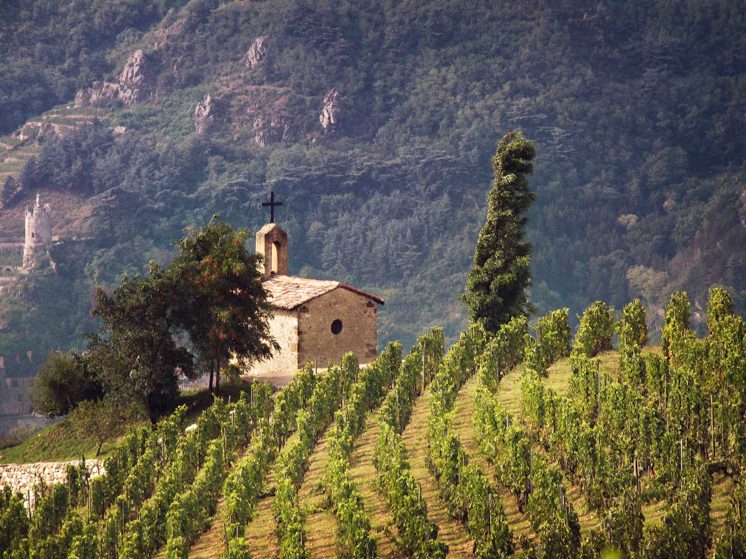 All the new stuff is well and good, but the soul of the Paul Jaboulet property is a small chapel perched on a vine-covered hill. Built in 1235, the chapel is surrounded by what many assert is the finest syrah vineyard in the world. It often is mentioned as one of the most iconic vineyard chapels in the world. You notice how [superlative] “in the world” comes up with this property. The world-exalted “Hermitage” wine gets its name from the hermit who lived in the chapel on the hill. There is great wine in the New World, but for magisterial stories you cannot top the Old World. You cannot top the chapel on Paul Jaboulet’s property.